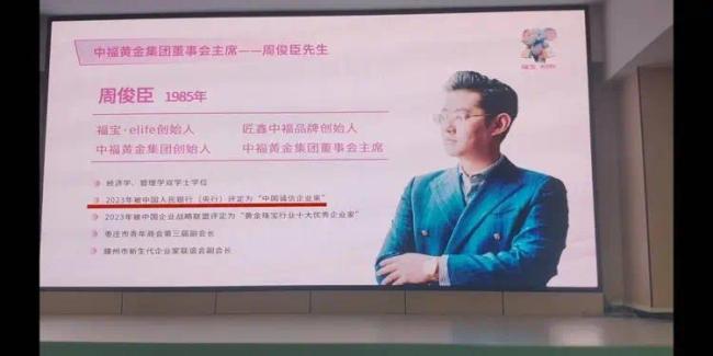 讲师介绍董事长周俊臣时称:“2023年被中国人民银行评定为中国诚信企业家。我们都知道做企业一个老板,可能企业会获得一些相关的荣誉,或者说是跟老板本人也会获得一些相关的东西,但是在我们的常规看到的一些荣誉基本上都是获得当地政府得到的颁发的一些荣誉证书,而我们董事长则不一样,是2023年被中国人民银行,也就是央行颁发的中国诚信企业家这一项殊荣,就光看这一条,我们就知道我们公司的含金量有多高,而且这个全国只有50个。”