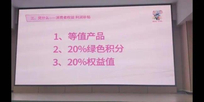 中福黄金集团讲师以颇具诱惑力的话术讲解:“那么你想搞钱到哪儿去搞?到钱多的地方去搞!咱们中福黄金做黄金的、做社交电商的,这是一个全新的赛道,而且这个赛道里面充满了机遇,充满了钱味儿。那么我们要搞清楚怎么搞钱,我们从四个维度跟大家做一个解析。你来到福宝商城里边,你不管消费任何的产品,你都讲获得三项权益,第一项权益,你能够获得等值的产品,咱们的商城里主打产品是黄金,咱们的黄金金条是9999的,我们还能获得20%的绿色积分,获得20%的权益值。